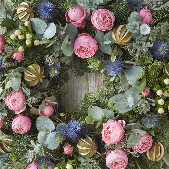 Not sure about the colours of the wreath? Let the florist choose! They'll pick beautiful blooms in an perfectly co-ordinating colour palette, and arrange them with glorious fresh foliage.